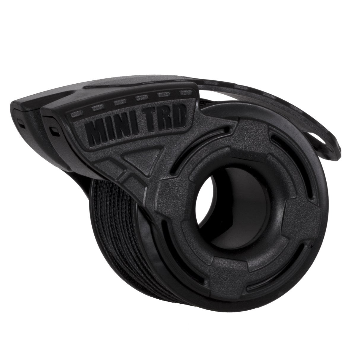 The Micro Cord Dispenser has a gear loop built in for attaching a carabiner, tether, or retractable lanyard. It has a built-in tension control lever for controlling how you need your cord. One of the best features is the integrated cutting blade. There is no need for additional tools such as a knife or scissors for cutting, and it's recessed for safety.