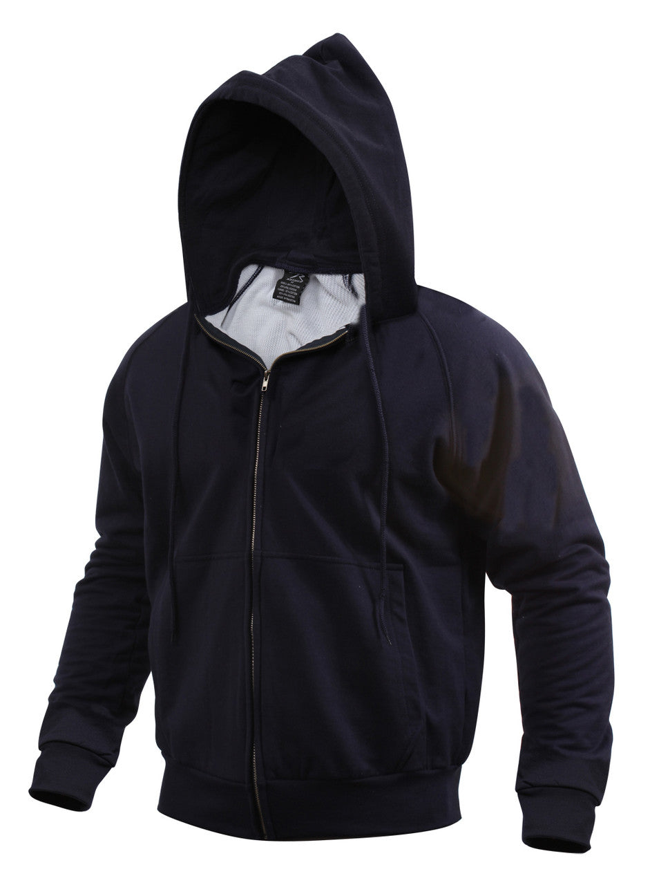 Rothco's Classic Thermal-lined Hooded Sweatshirt will keep you warm and comfortable, all season long. The Zippered Hoodie features a warm thermal lining with a durable cotton/poly outer shell. Two front pockets, drawstring hood and elastic knit wrist cuffs and waistband complete the sweatshirt.